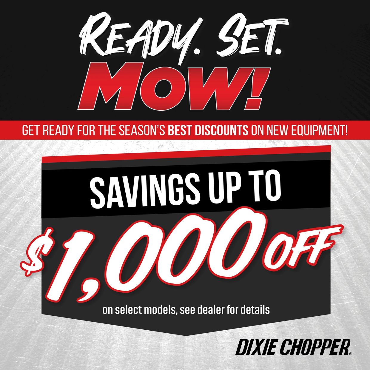 If you are an active-duty, retired, or veteran member of the U.S. Military, Police, Fire, or First Responder services, you can get up to a $500 rebate when you purchase a new Dixie Chopper lawn mower.